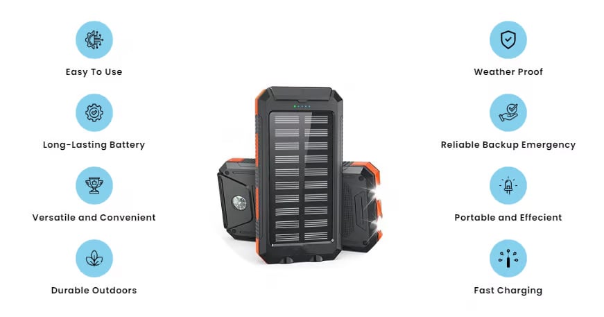 Experience limitless charging potential with our solar power bank. Compact and efficient, it captures sunlight to keep your devices juiced up on the go. Embrace freedom from outlets and enjoy uninterrupted adventures wherever the sun shines. a game-changer in portable charging technology. Say goodbye to the constraints of traditional power banks and embrace the boundless energy of the sun.