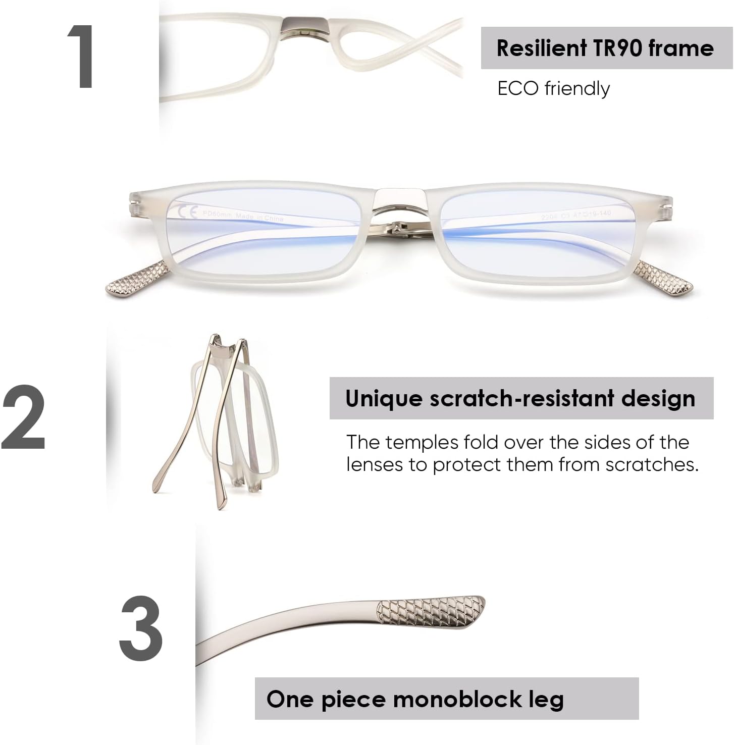 Premium Material: The frame is made from Swiss EMS tr90, which has better elasticity and toughness. The temples are made of premium metal material, durable and attractive