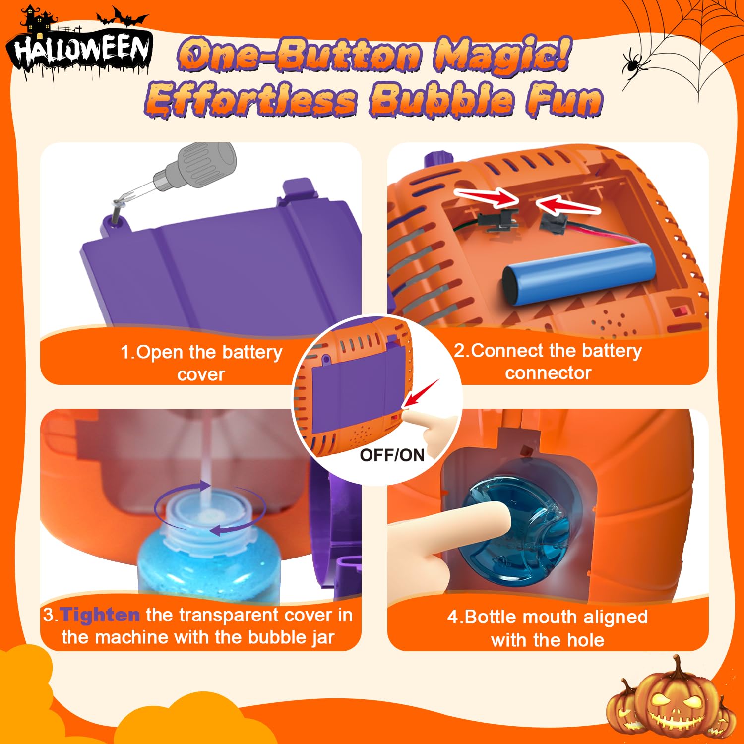 Complicated toys can be frustrating for young children to operate. The simple one button design is so easy to use, even the smallest ghouls can unleash a storm of spooky bubbles.