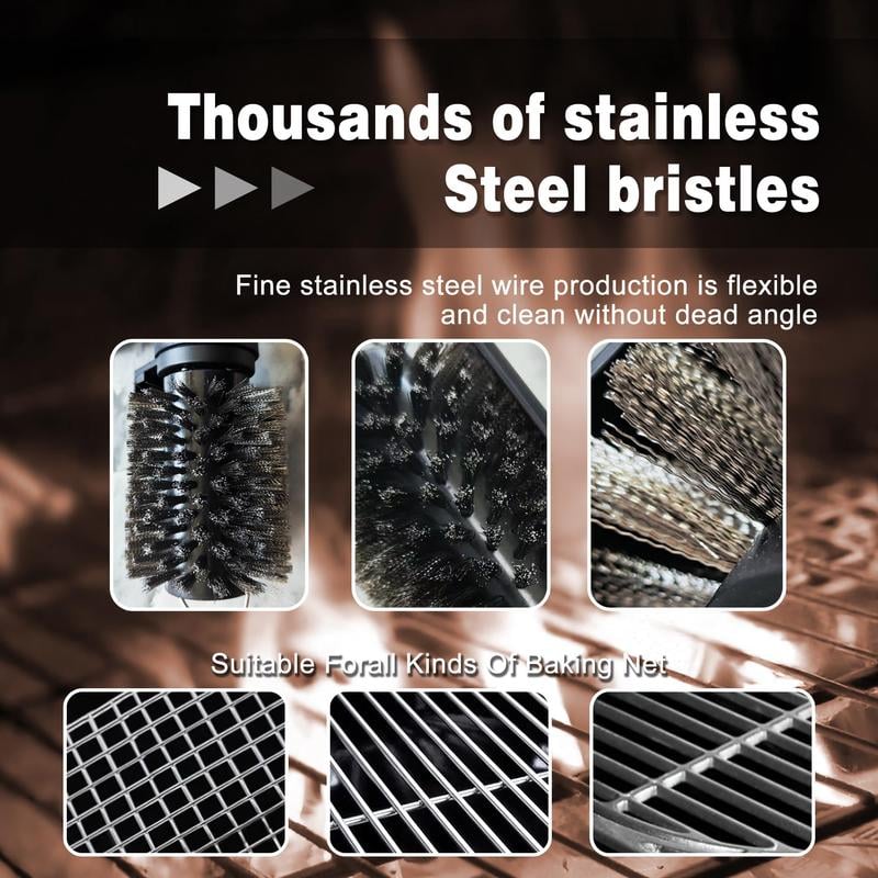 Stainless Steel Bristles 🧽: Tough enough to tackle stubborn grease and food residue, stainless steel bristles get your grill spotless in no time! 💪