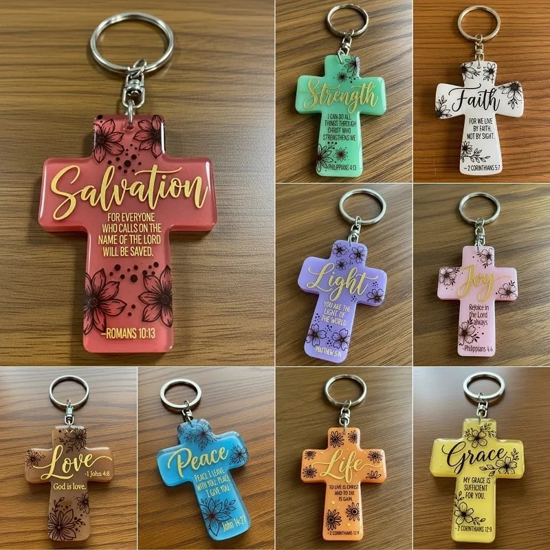 Whether you need a daily boost or want to share a word of hope with others, these cross-shaped keychains are perfect for adding a meaningful touch to your keys, bags, or as thoughtful gifts.
