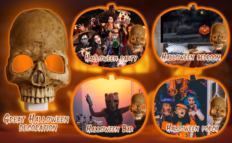 💀【 Realistic Human Skull Light 】 This Halloween skull lamp is crafted from hand-cast resin, taking hours or even days to complete. Every detail is carefully designed to make it look eerily realistic 🎃✨